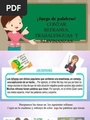 Os ofrecemos diferentes propuestas con actividades, juego, consejos, técnicas a aplicar juegos de palabras con rima. 24.08.2021 · los refranes son pequeños tesoros con los que los niños pueden aprender tradiciones del pasado y un buen recurso para estimular la lectura, tanto en casa como en el colegio.